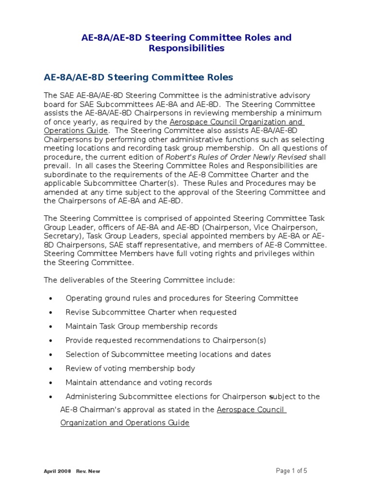Ae 8a Ae 8d Steering Committee Roles And Responsibilities Pdf Committee Chairman